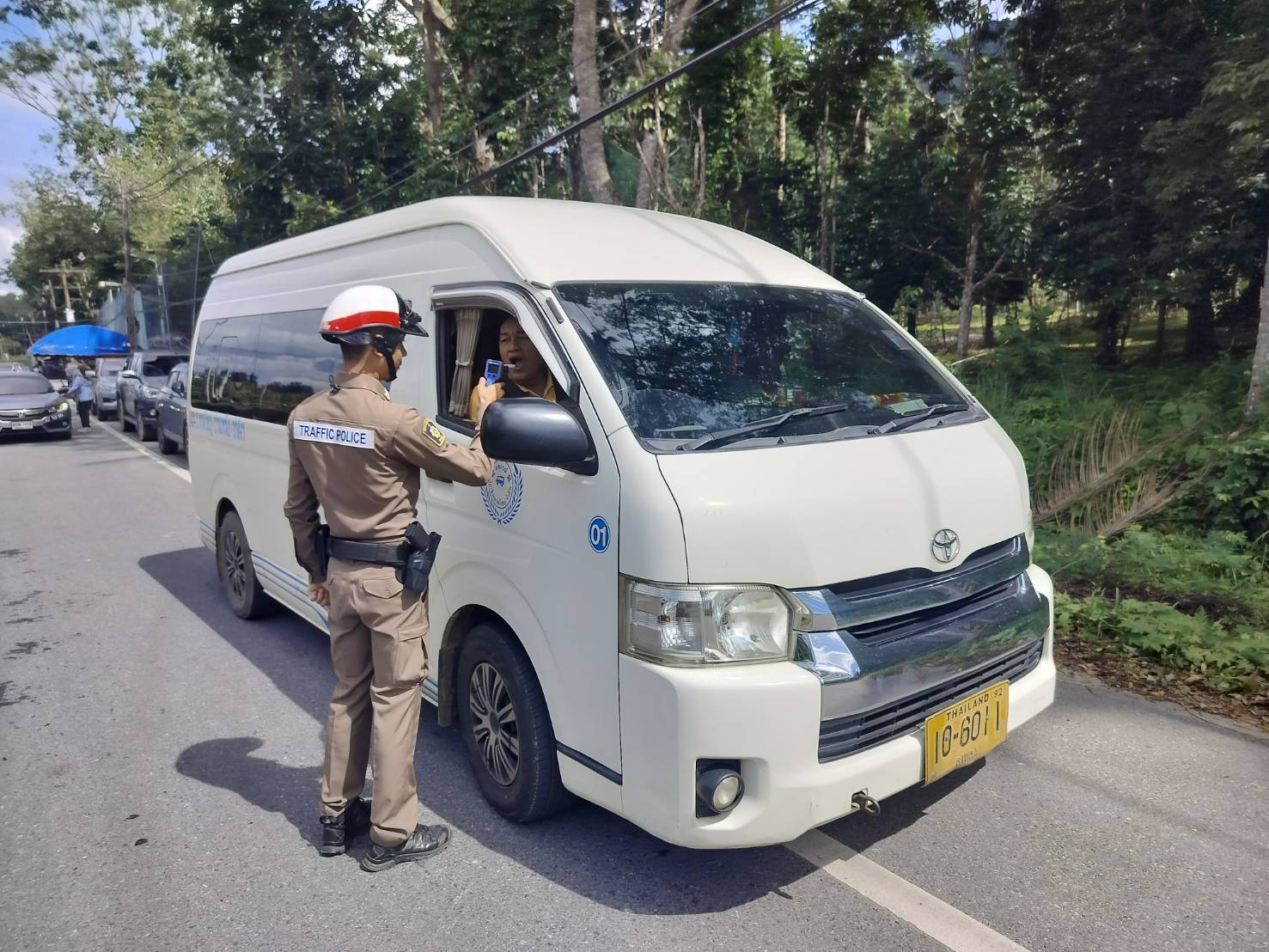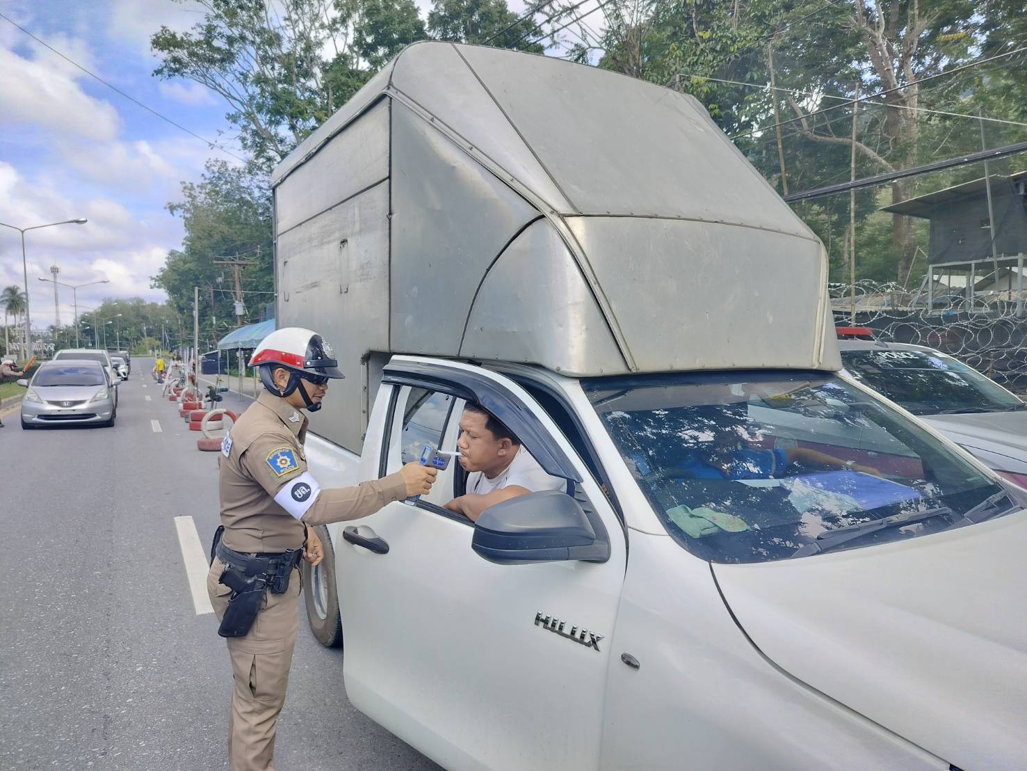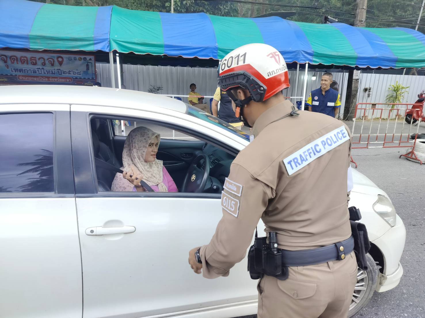 ประชาสัมพันธ์ขับรถให้ปฏิบัติตามกฎจราจร อย่าขับรถประมาท พร้อมตรวจวัดระดับแอลกอฮอล์จุดตรวจเทศกาลปีใหม่ 2568