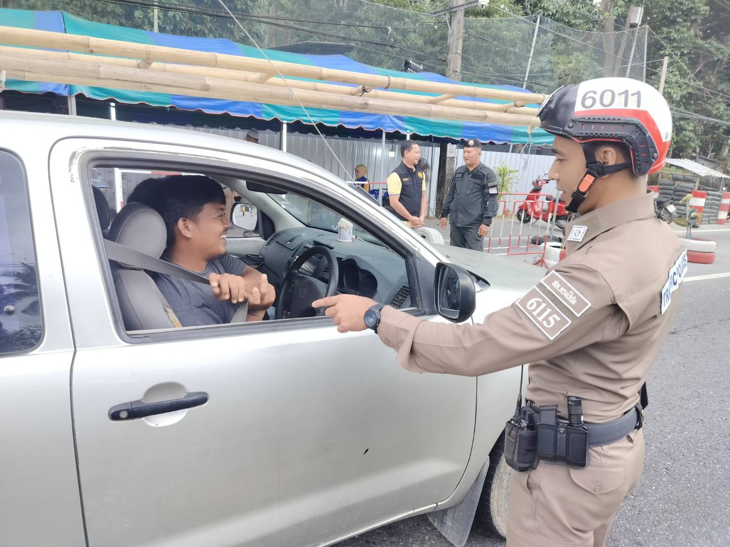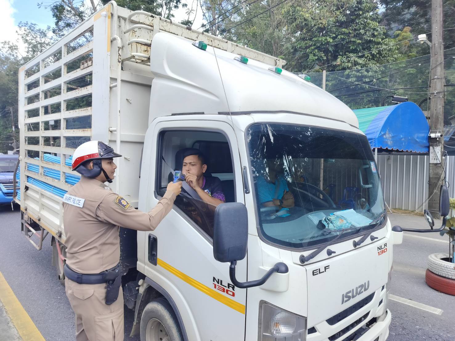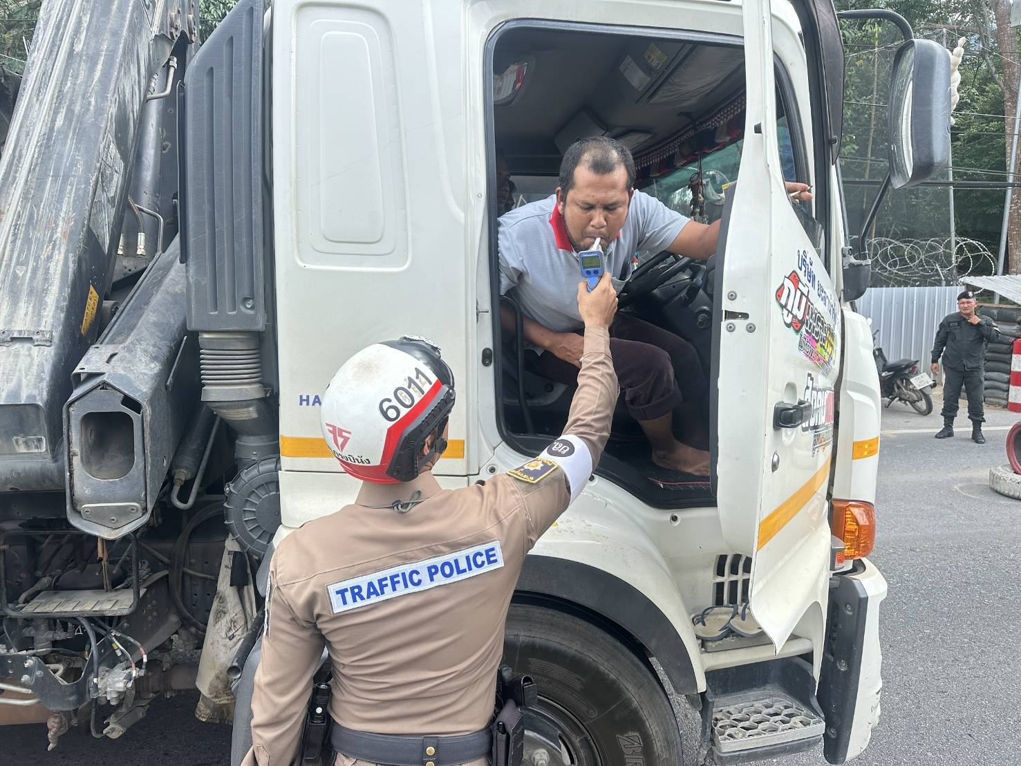 ประชาสัมพันธ์ขับรถให้ปฏิบัติตามกฎจราจร อย่าขับรถประมาท พร้อมตรวจวัดระดับแอลกอฮอล์จุดตรวจเทศกาลปีใหม่ 2568
