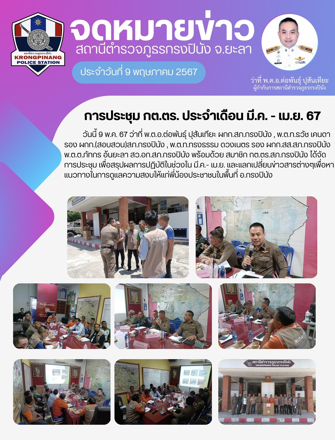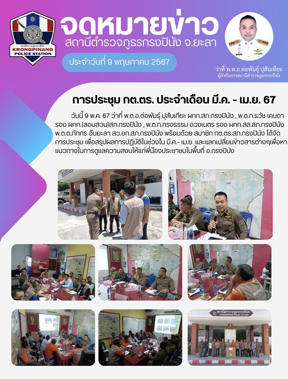 ประชุม กต.ตร.สภ.กรงปินัง 🫶🏻 10 พฤษภาคม 2567 โดย ADMIN_PINANG / ข่าวภารกิจผู้บังคับบัญชา FacebookFacebookXXLINELine