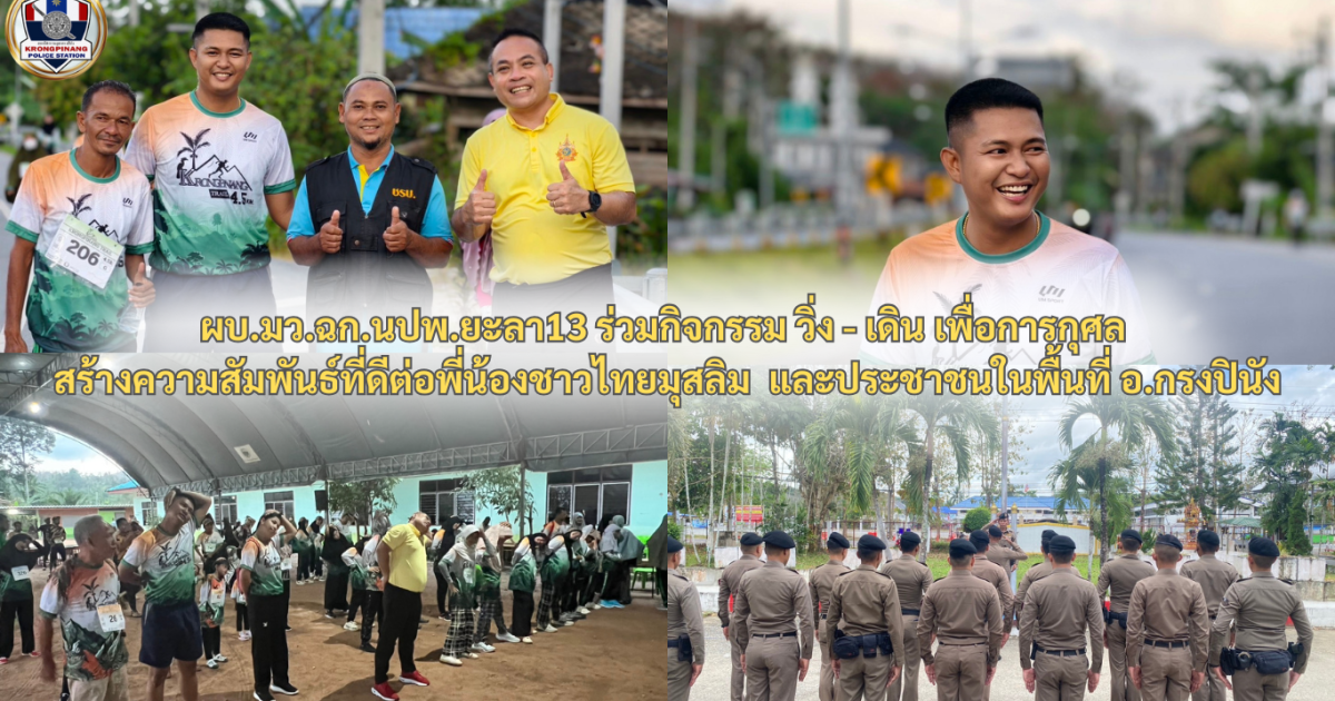 ผบ.มว.ฉก.นปพ.ยะลา13 ร่วมกิจกรรม วิ่ง – เดิน เพื่อการกุศล สร้างความสัมพันธุ์ที่ดีต่อพี่น้องชาวไทยมุสลิม และประชาชนในพื้นที่ อ.กรงปินัง
