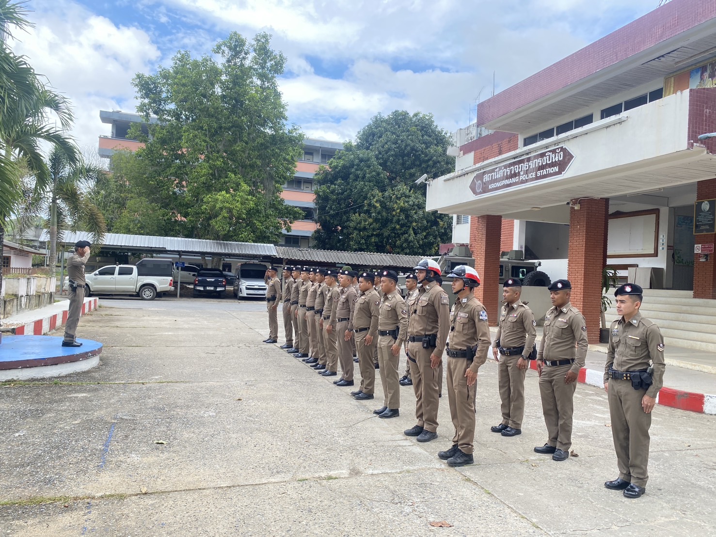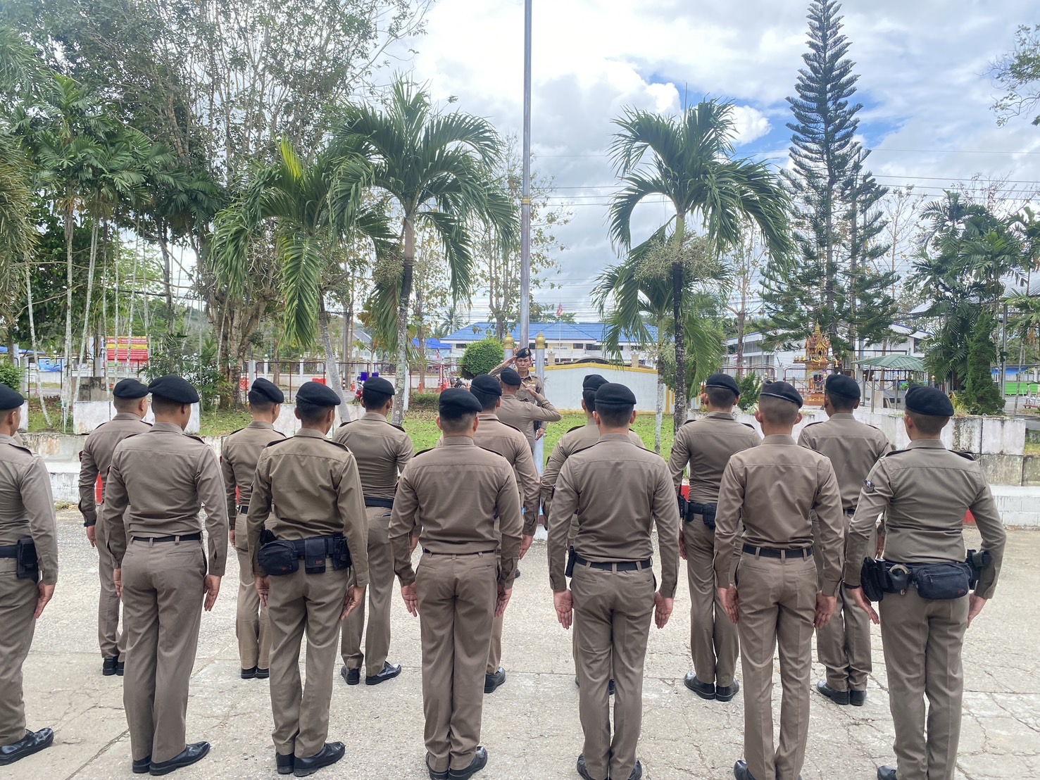 รอง ผกก(สอบสวน)สภ.เมืองยะลา ปรก. รอง ผกก.(สอบสวน)สภ.กรงปินัง เรียกแถวตรวจสอบความพร้อมชุดกองหนุน(คฝ.) และชุดรักษาความปลอดภัย