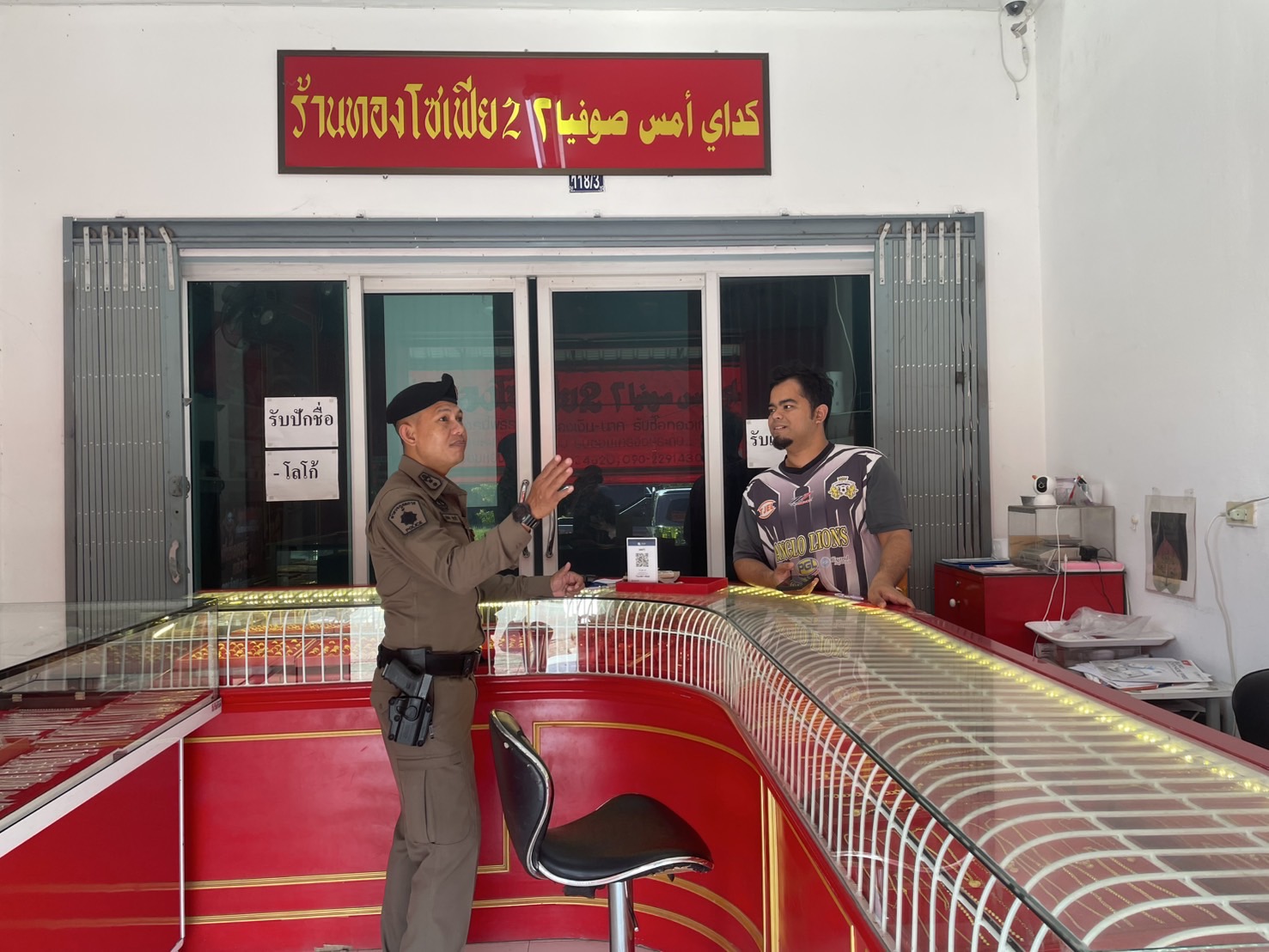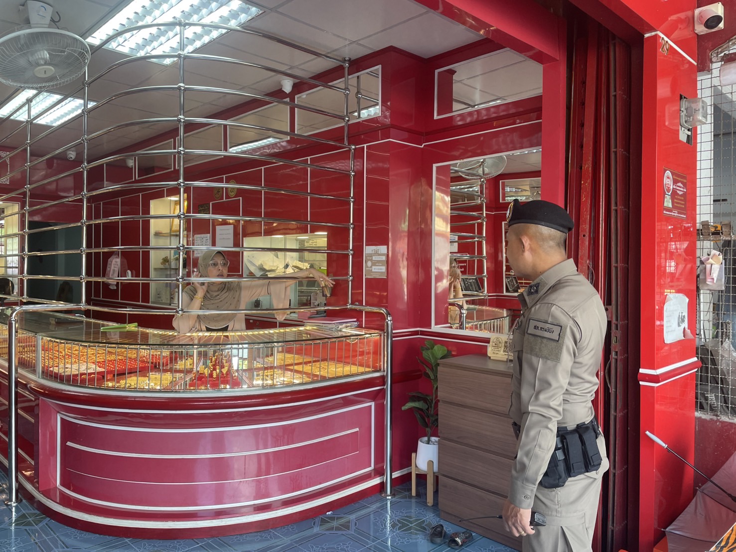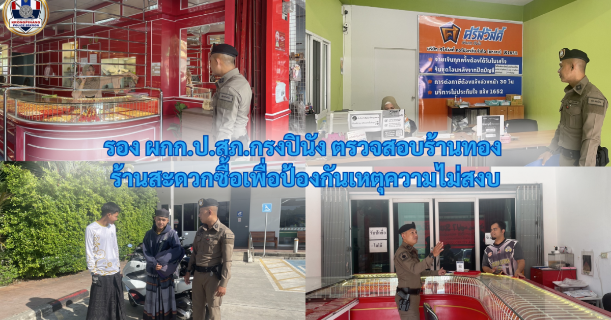 รอง ผกก.ป.สภ.กรงปินัง ออกตรวจสอบร้านทอง ร้านสะดวกซื้อเพื่อป้องกันเหตุความไม่สงบ