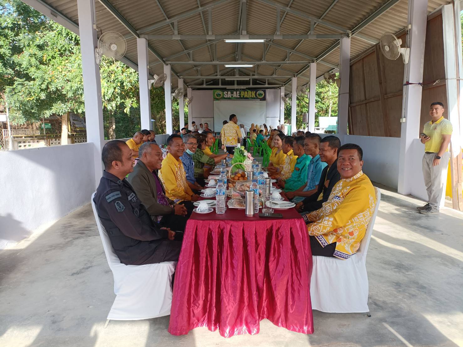 พ.ต.อ.ต่อพันธุ์ ปุสันเทียะ ผกก.สภ.กรงปินัง มอบหมายให้ พ.ต.ท.ทรงธรรม ดวงเนตร์ รอง ผกก.สส.สภ.กรงปินัง พร้อมด้วยหัวหน้าส่วนราชการ และส่วนราชการ ผู้นำชุมชน ประชาชน ร่วมพบปะจิบน้ำชายามเช้า พร้อมพบปะพูดคุยฯ เพื่อสร้างความสัมพันธ์ที่ดี ตลอดจนสร้างข่าวสาร (io) ที่เป็นประโยชน์ต่อทางราชการ ณ องค์การบริหารส่วนตำบลสะเอะ หมู่ที่ 1 ต.สะเอะ อ.กรงปินัง จว.ยะลา