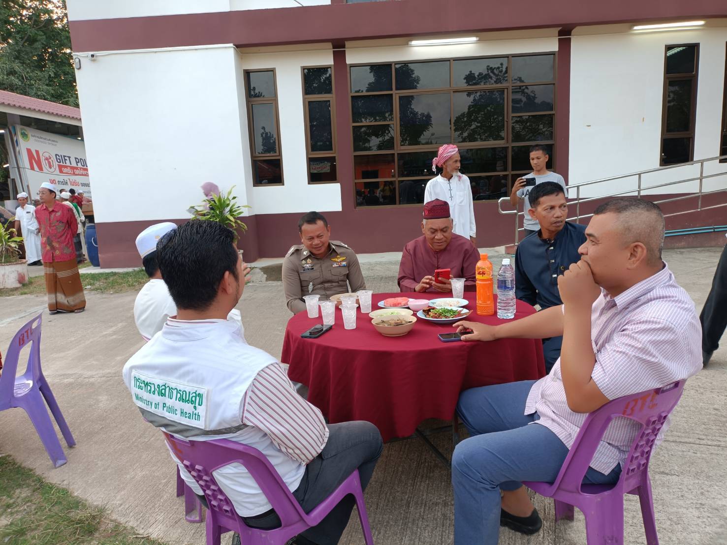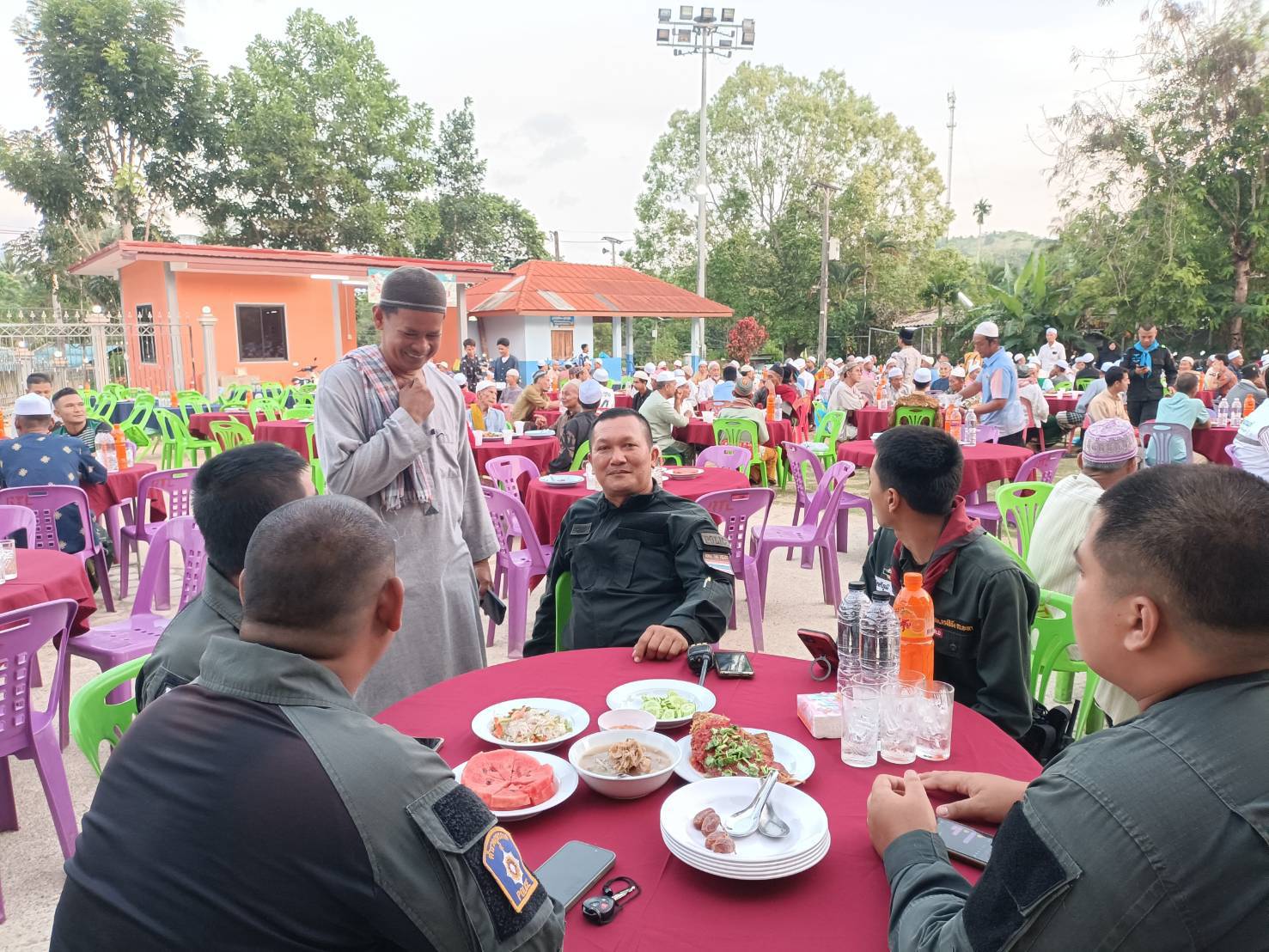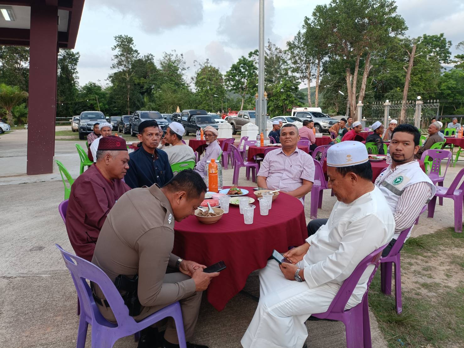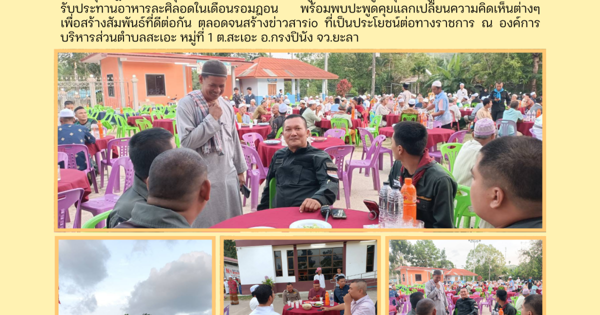 ร.ต.อ.วิโรจน์ นนทะเสน รอง สวป. สภ.กรงปินัง พร้อมชุดปฏิบัติการวายุ ร่วมหัวหน้าส่วนราชการ ผู้นำท้องถิ่น ผู้นำชุมชน ผู้นำศาสนา ประชาร่วมรับประทานอาหารละศิลอดในเดือนรอมฎอน พร้อมพบปะพูดคุยแลกเปลี่ยนความคิดเห็นต่างๆ เพื่อสร้างสัมพันธ์ที่ดีต่อกัน ตลอดจนสร้างข่าวสารio ที่เป็นประโยชน์ต่อทางราชการ ณ องค์การบริหารส่วนตำบลสะเอะ หมู่ที่ 1 ต.สะเอะ อ.กรงปินัง จว.ยะลา