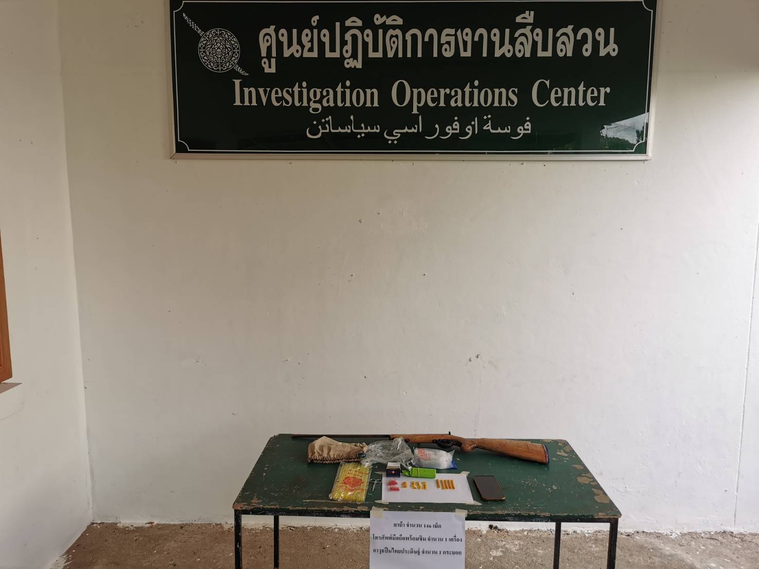 สถานที่จับกุม ภายในบ้านไม่มีเลขที่ ข้างบ้านเลขที่ 42 ม.2 ต.ปุโรง อ.กรงปินัง จว.ยะลา โดยมีนายฟิตรีย์ มะเซ็ง (ผู้ถูกจับกุม/ผู้นำตรวจยึด)