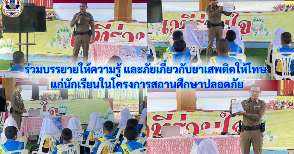 ร่วมบรรยายให้ความรู้ และภัยเกี่ยวกับยาเสพติดให้โทษ แก่นักเรียน ในโครงการสถานศึกษาปลอดภัย