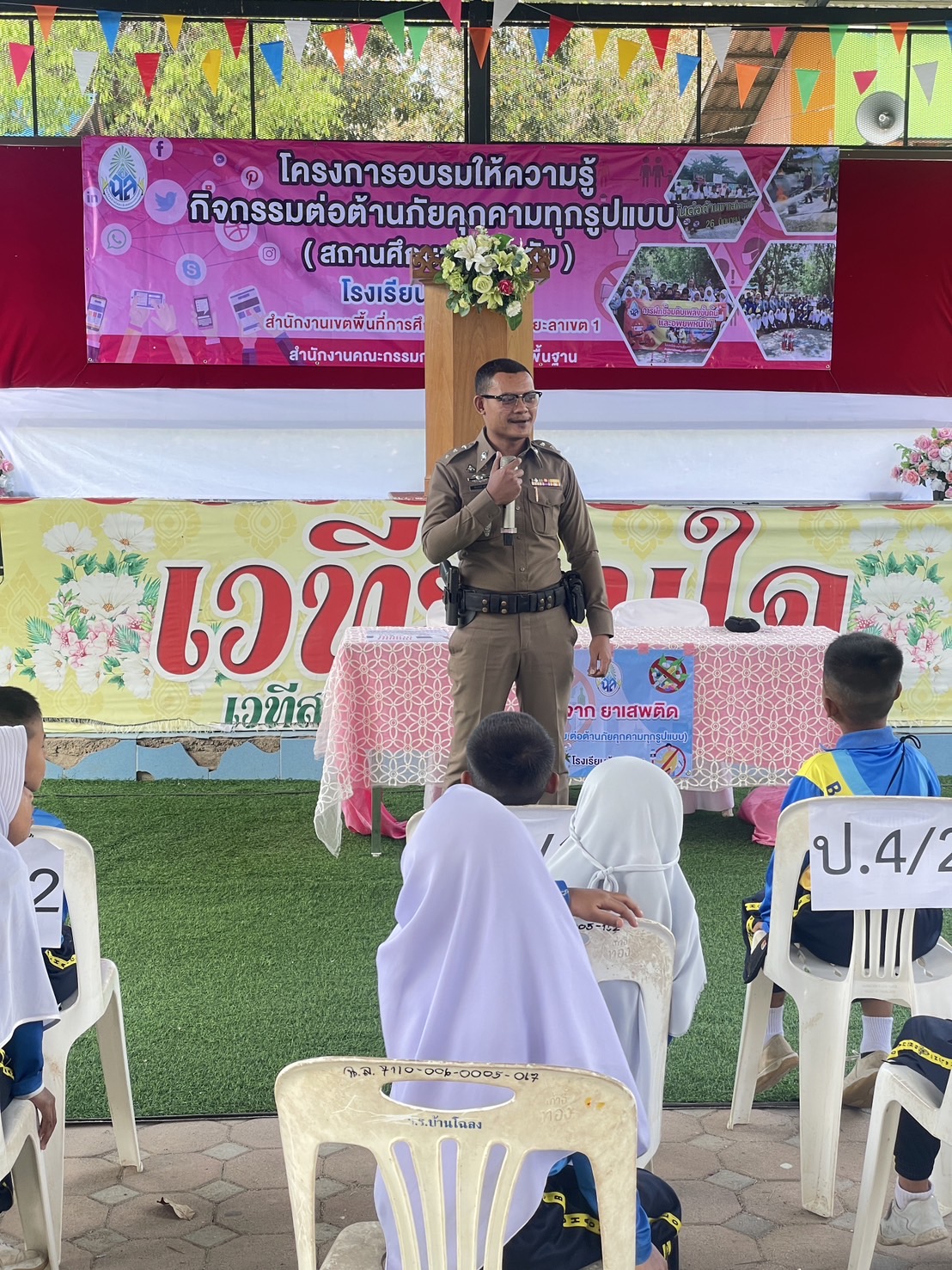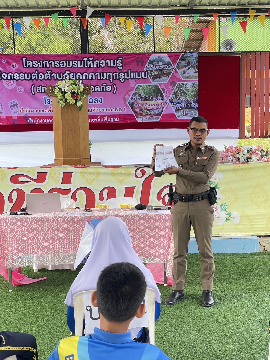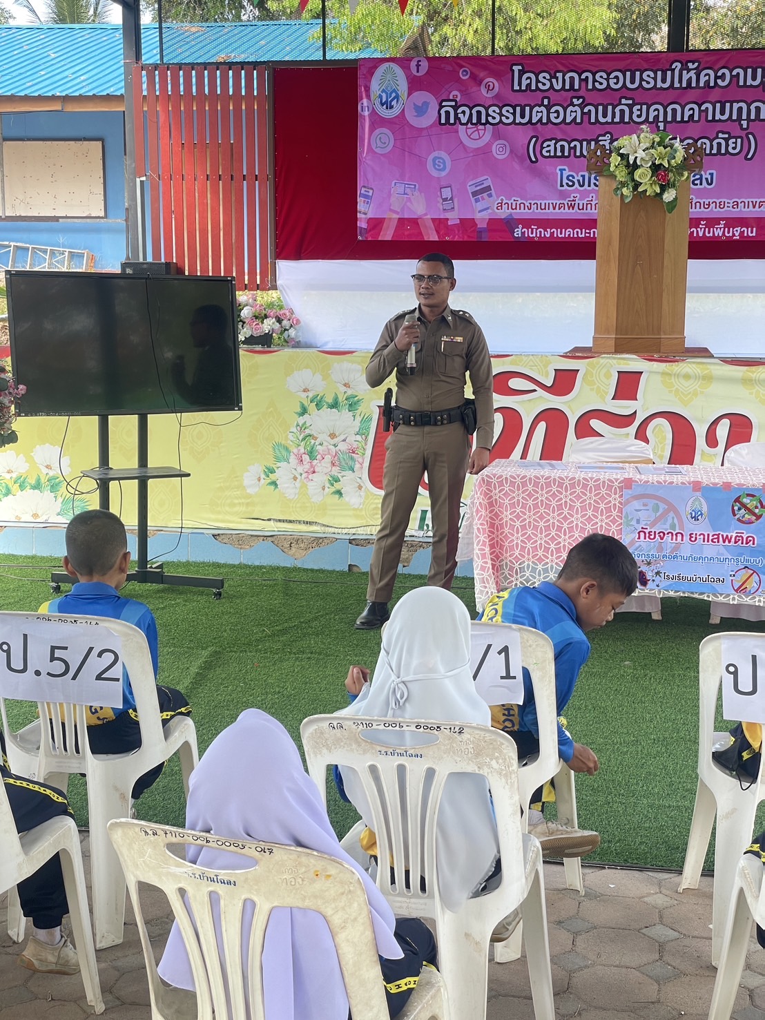 ร.ต.อ.พีระพันธ์ สุขพร รอง.สว(สอบสวน) สภ.กรงปินัง ร่วมบรรยายให้ความรู้ และภัยเกี่ยวกับยาเสพติดให้โทษ แก่นักเรียน ในโครงการสถานศึกษาปลอดภัย ณ โรงเรียนโฉลง ม.2 ต.ปุโรง อ.กรงปินัง จ.ยะลา