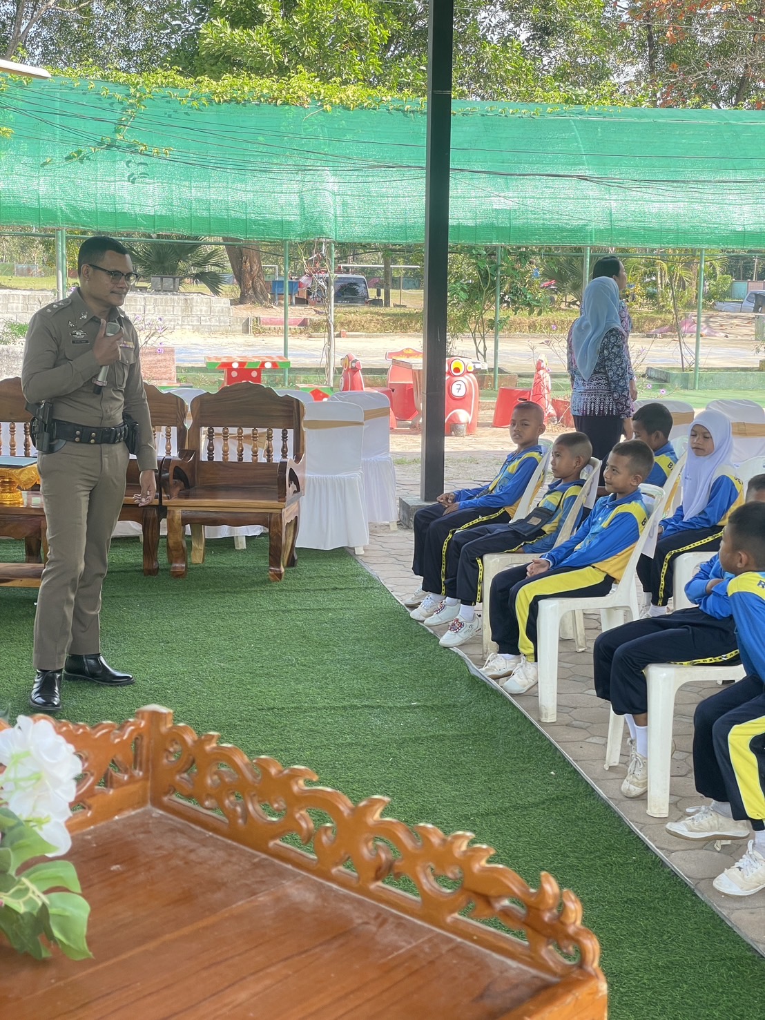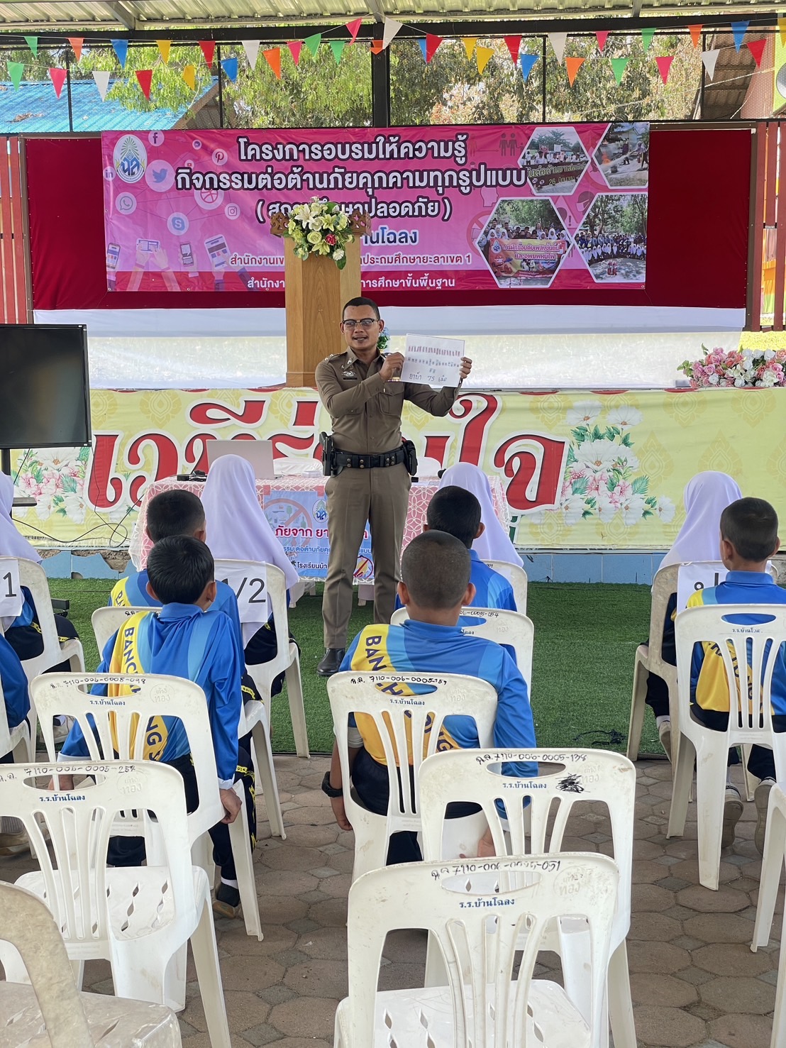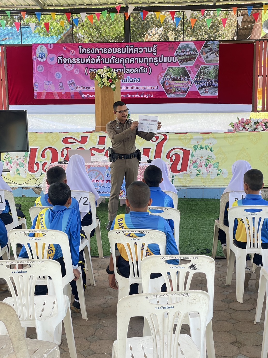 ร.ต.อ.พีระพันธ์ สุขพร รอง.สว(สอบสวน) สภ.กรงปินัง ร่วมบรรยายให้ความรู้ และภัยเกี่ยวกับยาเสพติดให้โทษ แก่นักเรียน ในโครงการสถานศึกษาปลอดภัย ณ โรงเรียนโฉลง ม.2 ต.ปุโรง อ.กรงปินัง จ.ยะลา