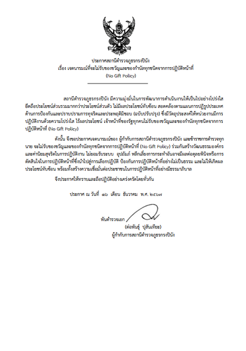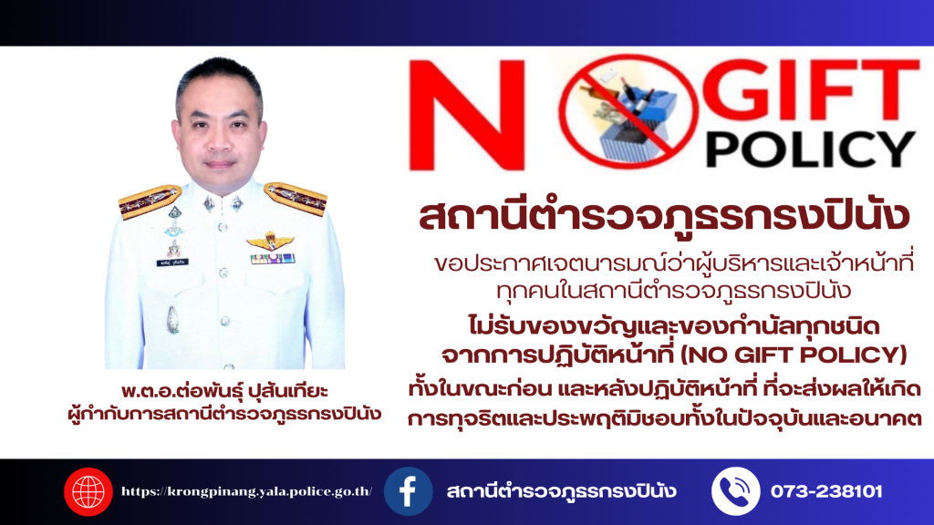 ร่วมประกาศเจตนารมณ์ที่จะไม่รับของขวัญและของกำนัลทุกชนิดจากการปฏิบัติหน้าที่ (No Gift Policy)