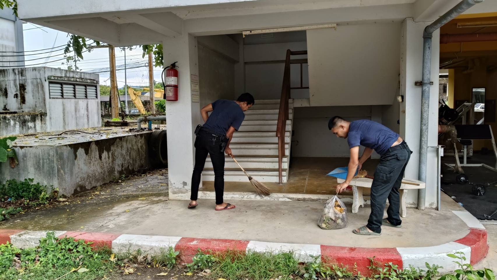 พร้อมด้วยข้าราชการตำรวจ สภ.กรงปินัง ร่วมพัฒนาที่ตั้ง ทำความสะอาด บริเวณที่พักอาศัย แฟลต,บ้านพักเรือนแถวของตนเอง