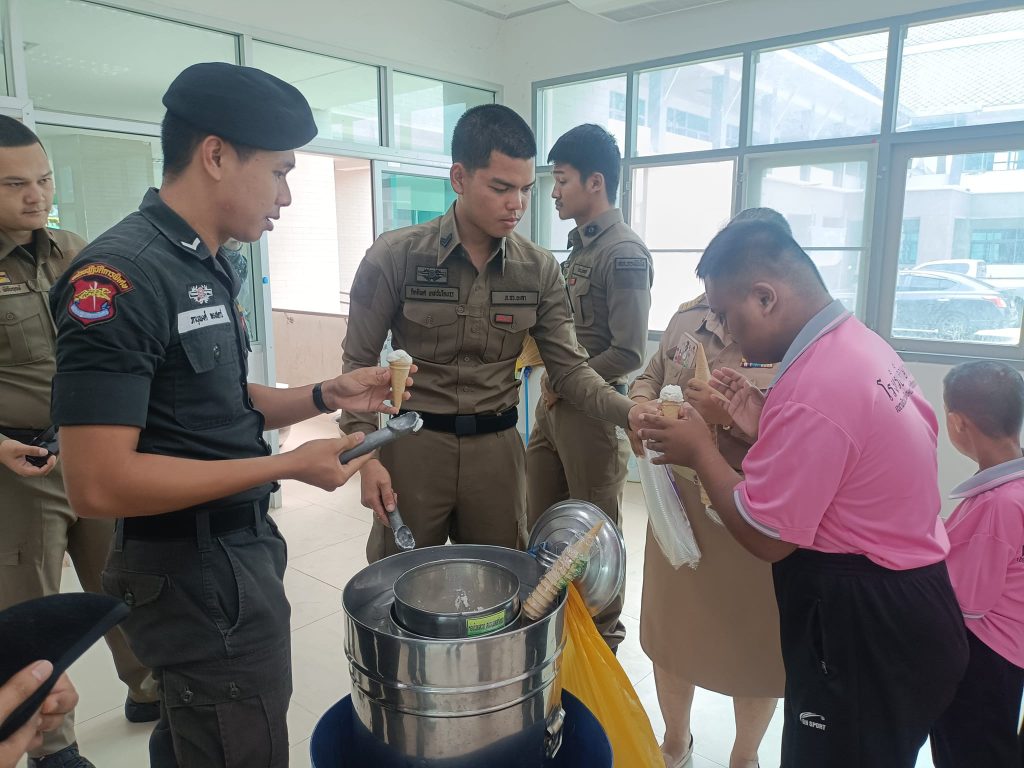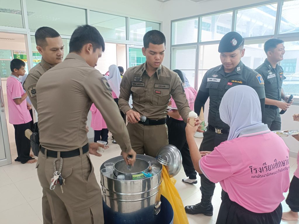 สนับสนุนไอศครีม 1 ถัง 12 มีนาคม 2567 โดย ADMIN_PINANG / ข่าวภารกิจผู้บังคับบัญชา วันที่ 12 มี.ค.67 เวลา 12.00 น. ว่าที่ พ.ต.อ.ต่อพันธุ์ ปุสันเทียะ ผกก.สภ.กรงปินัง มอบหมายให้ ร.ต.ท.จิรายุ อ่อนละมูล ผบ มว ฉก.ยล 13 พร้อมด้วยชุดปฏิบัติการพิเศษและเจ้าหน้าที่ธุรการ สภ.กรงปินัง ร่วมกิจกรรมสนับสนุน ไอศครีม 1 ถัง แจกจ่ายให้เด็กนักเรียนพิเศษตามโครงการ ” ปันรักปันสุขสร้างโอกาสทางการศึกษา ” ให้กับน้องๆ จังหวัดชายแดนภาคใต้ ณ โรงเรียนศึกษาพิเศษเขตพัฒนาพิเศษ FacebookFacebookXXLINELine