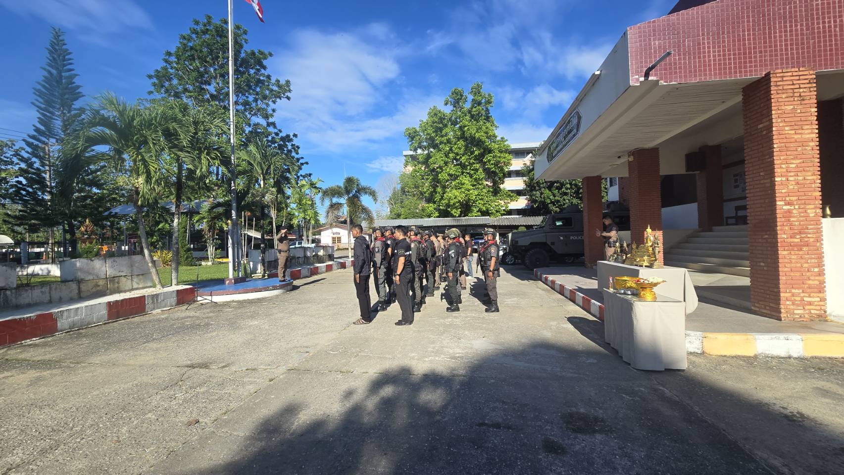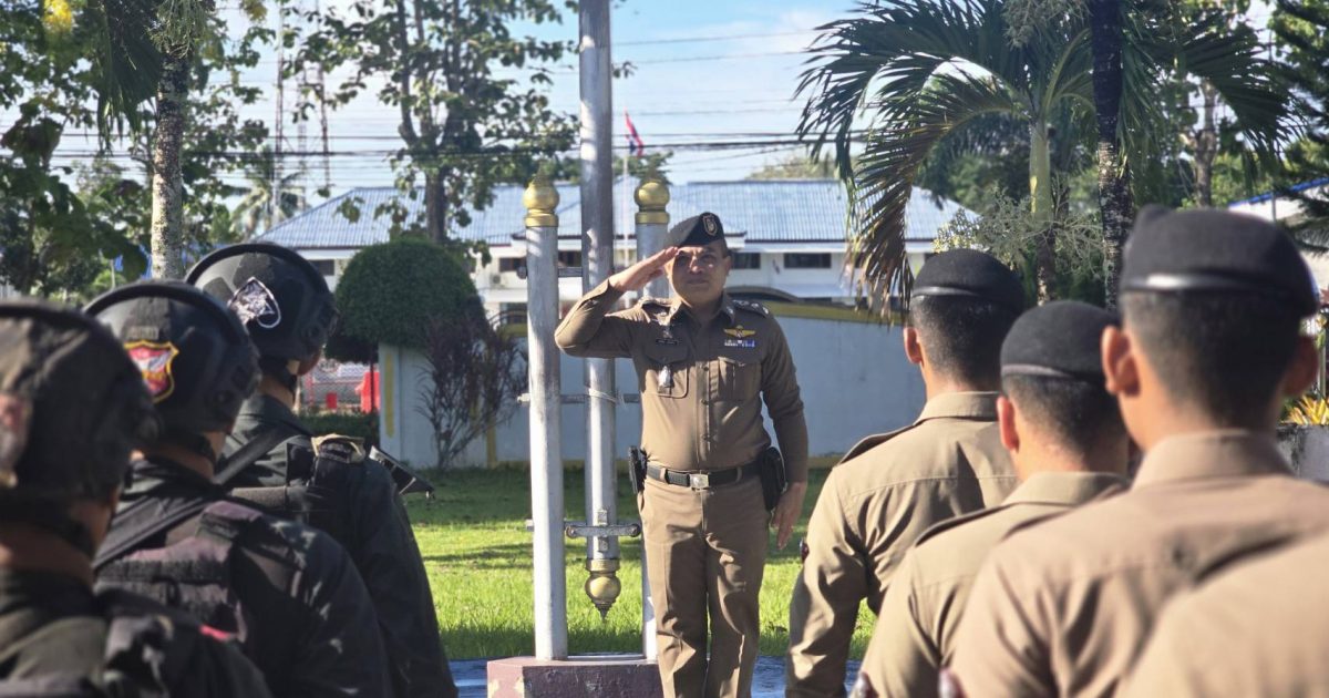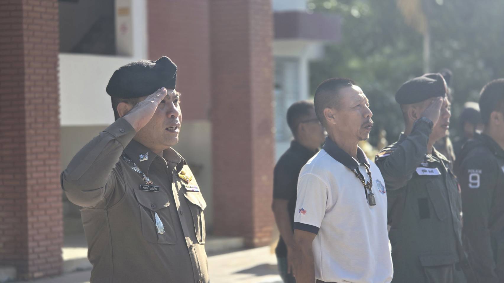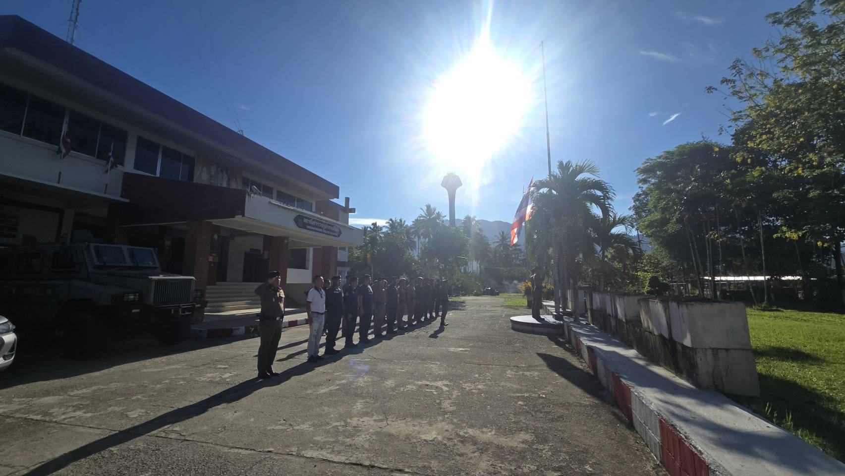 ว่าที่ พ.ต.อ.ต่อพันธุ์ ปุสันเทียะ ผกก.สภ.กรงปินัง ,พ.ต.ท.ทรงธรรม ดวงเนตร์ รอง ผกก.สส.สภ.กรงปินัง ,พ.ต.ท.ศุภโชค สระศรี รอง ผกก.ป.สภ.กรงปินัง ,ว่าที่ พ.ต.ท.ภัทกร อ้นยะลา สว.อก.สภ.กรงปินัง ,ว่าที่ พ.ต.ต.ชานนท์ ทองเพชร สว.สส.สภ.กรงปินัง ,ร.ต.อ.วิโรจน์ นนมะเสน รอง สวป.สภ.กรงปินัง ,ร.ต.ต.สุรพัฒน์ สงเคราะห์ พร้อมข้าราชการตำรวจ ร่วมเข้าแถวแสดงความเคารพธงชาติ, กล่าวคำสัตย์ปฎิญาณ, กล่าวอุคมคติของตำรวจ