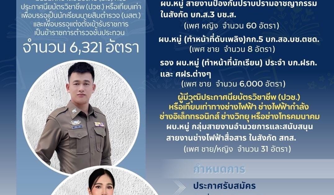เปิดรับสมัครและคัดเลือกบุคคลภายนอก ผู้มีวุฒิ ประกาศนียบัตรมัธยมศึกษาตอนปลาย(ม.6) หรือประกาศนียบัตร วิชาชีพ(ปวช.)