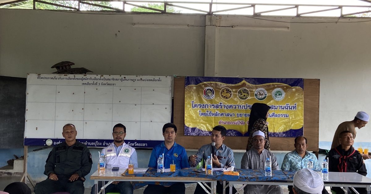 โครงสร้างความปรองดองสมานฉันท์ 1 มีนาคม 2567 โดย ADMIN_PINANG / ข่าวภารกิจผู้บังคับบัญชา วันนี้ 1 มี.ค. 67 เวลา 13.00 น. พ.ต.ท.สาธิต งามเชื้อสวป.สภ.กรงปินัง ปฏิบัติภารกิจ– ร่วมหัวหน้าส่วนราชการ– ภารกิจ ร่วมกำหนดแผนการขับ เคลื่อนโครงสร้างความปรองดองสมานฉันท์โดยใช้หลักศาสนาขยายผลสู่หมู่บ้านศีลธรรม ระดับอำเภอมีวัตถุประสงค์เพื่อพบปะประชาชนที่มัสยิดทุกวันศุกร์ของสัปดาห์ และเยี่ยมเยือนกลุ่มเปราะบางในพื้นที่อำเภอกรงปินัง ณ มัสยิดดารุสาลาม บ้าน ตะโล๊ะปานะ หมู่ที่ 3 ตำบลปุโรง อำเภอกรงปินัง จังหวัดยะลา FacebookFacebookXXLINELine