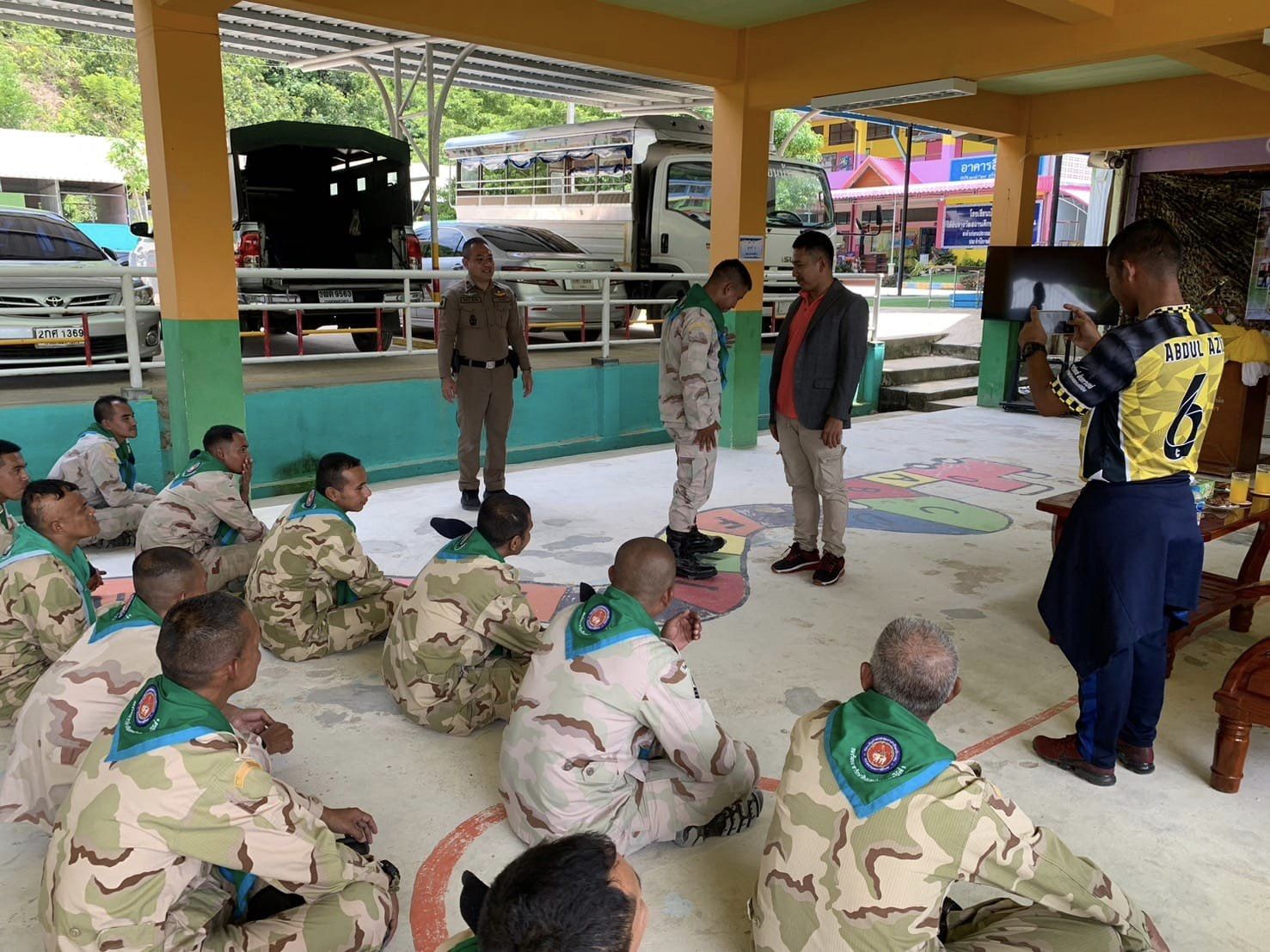 ให้ความรู้เกี่ยวกับการตั้งด่าน จุดตรวจ จุดสกัดแก่บุคคลากร อส.อำเภอกรงปินัง พร้อมร่วมพิธีเปิดโครงการเสริมสร้างความเข้มแข็งและพัฒนาศักยภาพในการปฏิบัติหน้าที่ของสมาชิกกองอาสารักษาดินแดน อ.กรงปินัง ณ โรงเรียนบ้านสะเอะ ต.สะเอะ อ.กรงปินัง