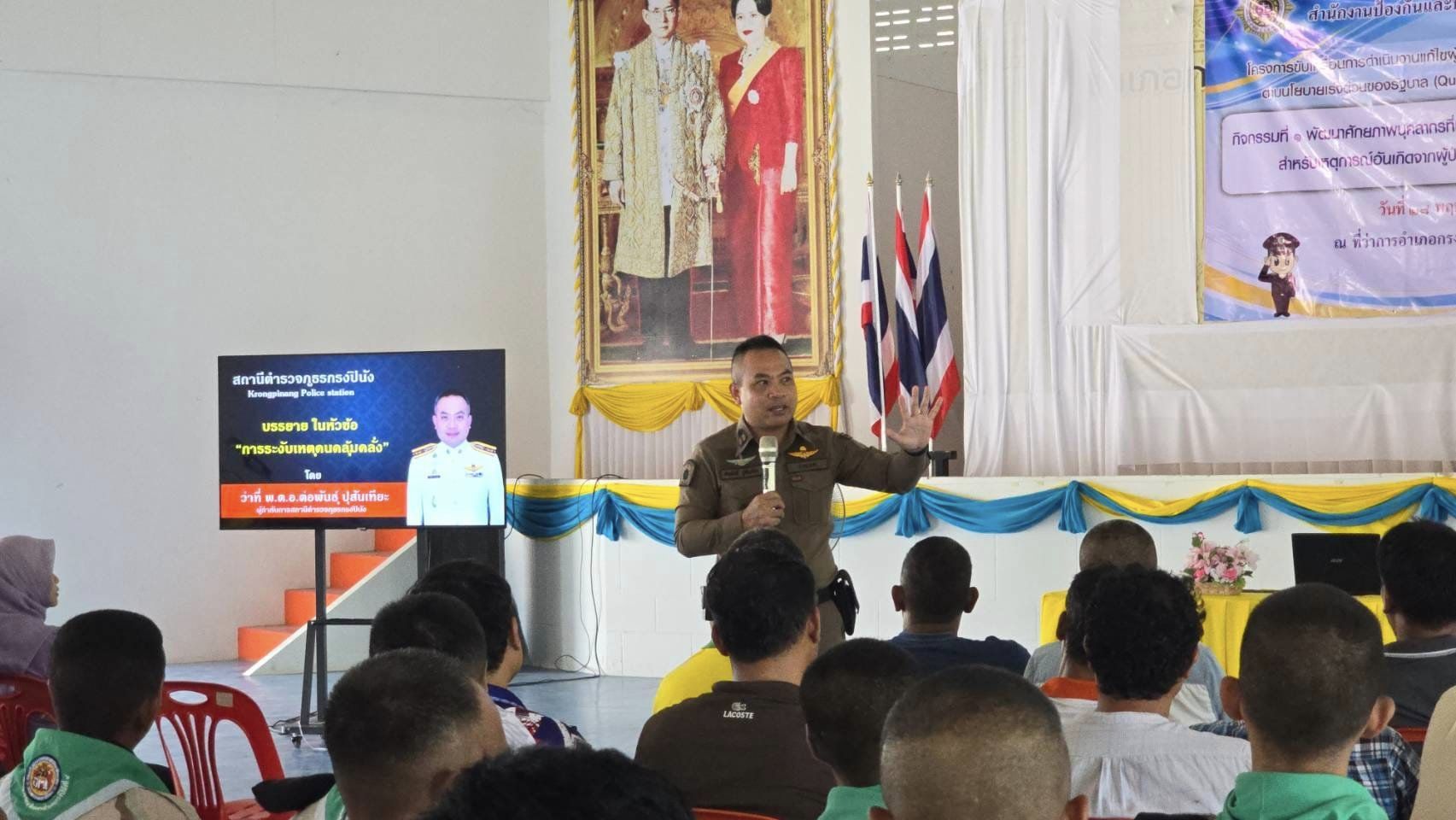 ผกก.สภ.กรงปินัง ร่วมเป็นวิทยากรบรรยายภายใต้โครงการขับเคลื่อนดำเนินงานแก้ไขปัญหาผู้มีอาการทางจิต R