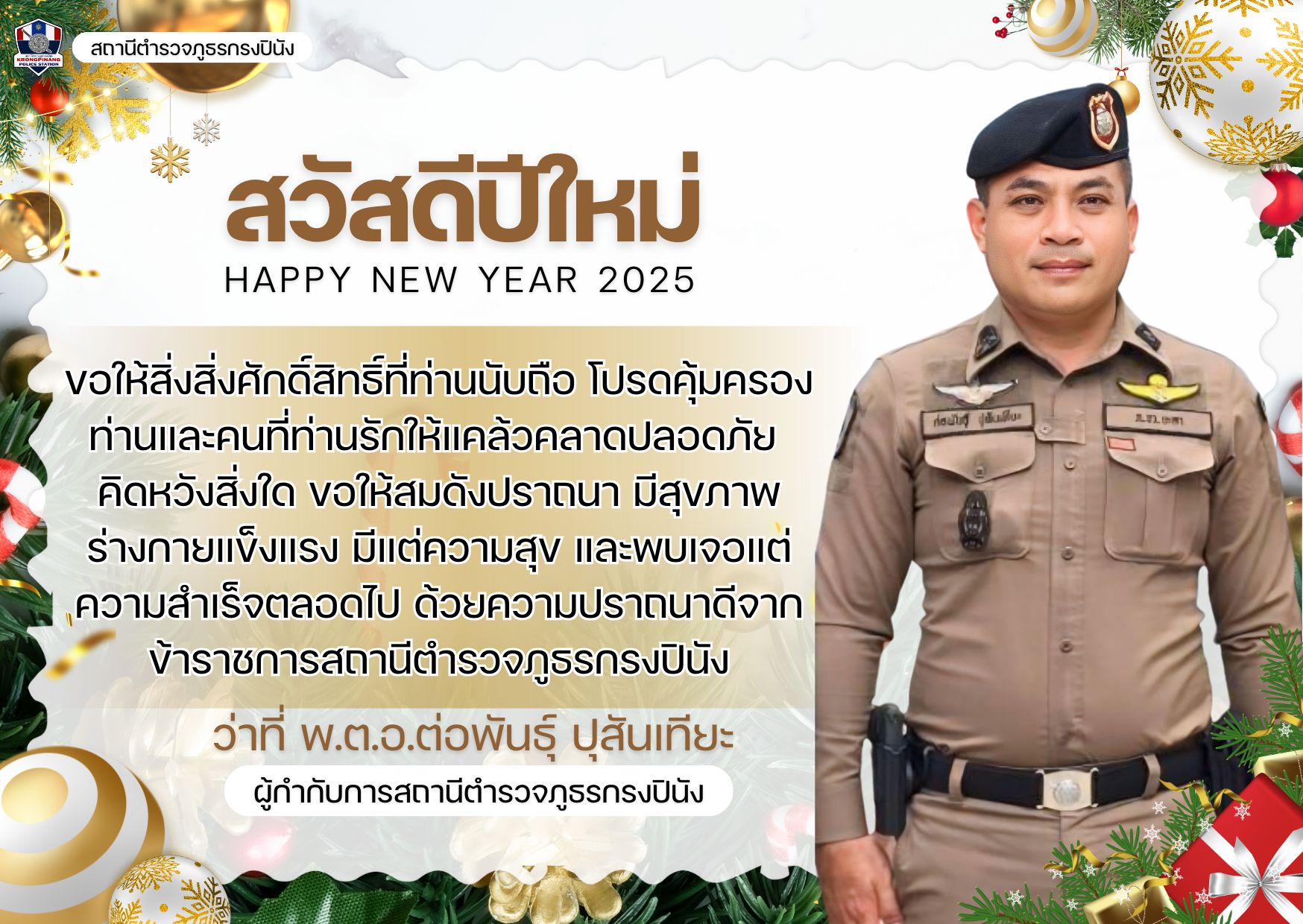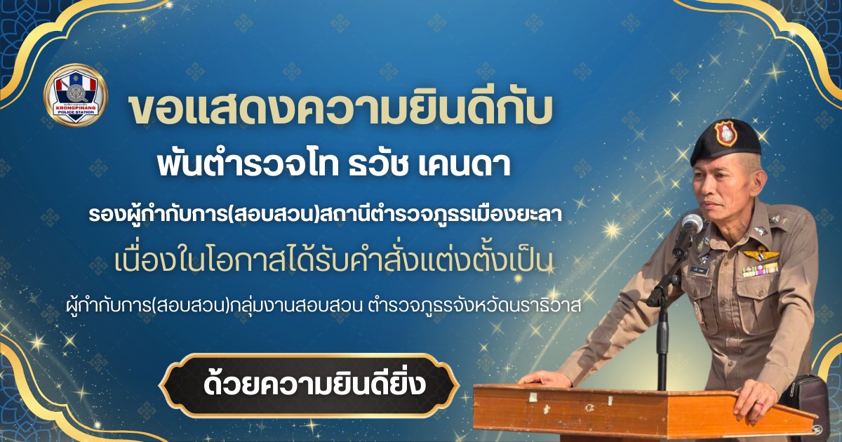 สถานีตำรวจภูธรกรงปินังขอแสดงความยินดีกับพันตำรวจโทธวัช เคนดา ผู้กำกับการสถานีตำรวจเมืองยะลาเนื่องในโ