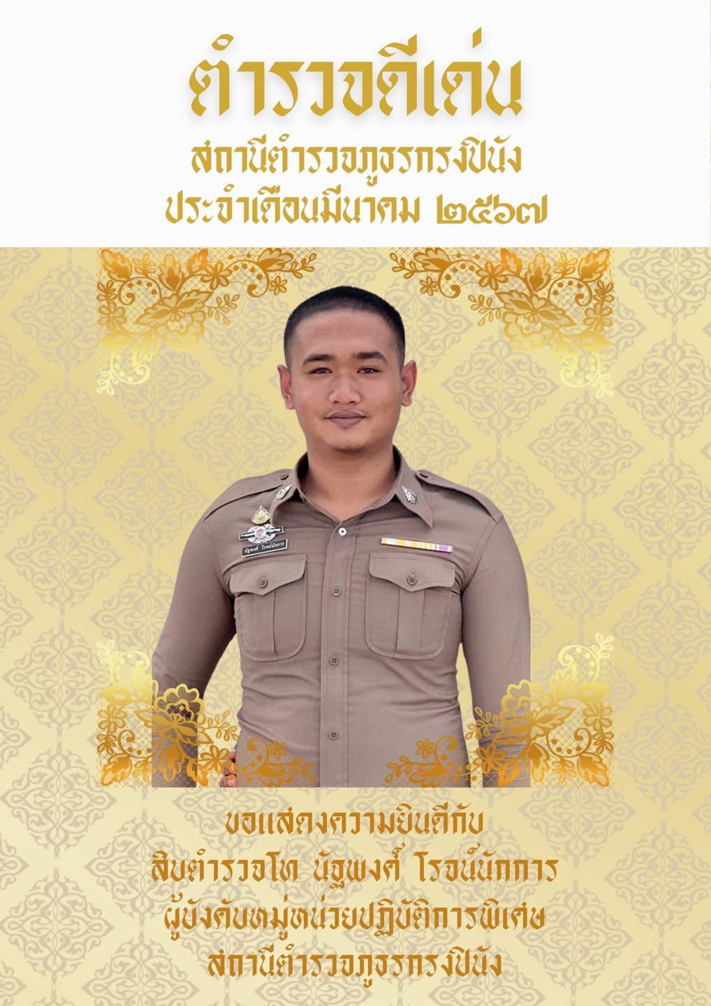 ขอเเสดงความยินดีกับข้าราชการตำรวจดีเด่นประจำเดือน มีนาคม 2567 ได้เเก่ ส.ต.ท.นัฐพงศ์ โรจน์นักการ ผบ.ห