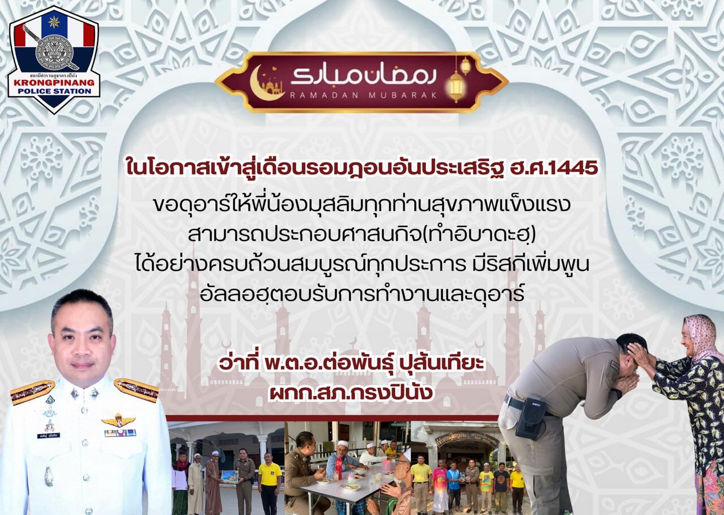 เนื่องในโอกาสเข้าสู่เดือนรอมฎอนอันประเสริฐ ฮ.ศ.1445 ว่าที่ พ.ต.อ.ต่อพันธุ์ ปุสันเทียะ ผกก.สภ