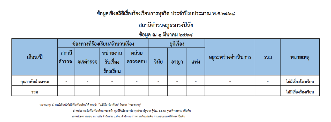 ข้อมูลเชิงสถิติเรื่องร้องเรียนการทุจริต เดือน ก.พ.68