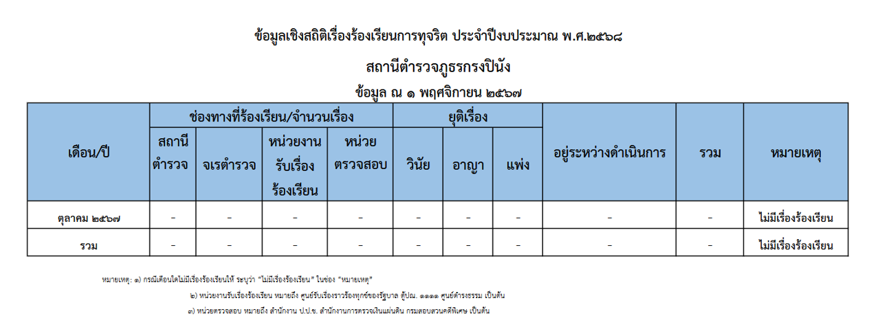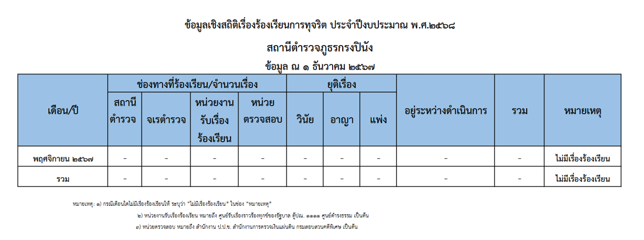 ข้อมูลเชิงสถิติเรื่องร้องเรียนการทุจริต เดือน พ.ย.67