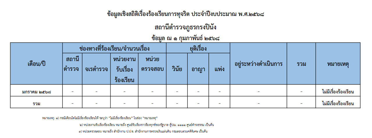 ข้อมูลเชิงสถิติเรื่องร้องเรียนการทุจริต เดือน ม.ค.68