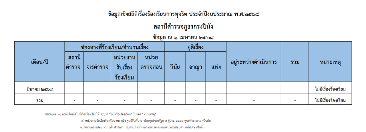 ข้อมูลเชิงสถิติเรื่องร้องเรียนการทุจริต เดือน มี.ค.68
